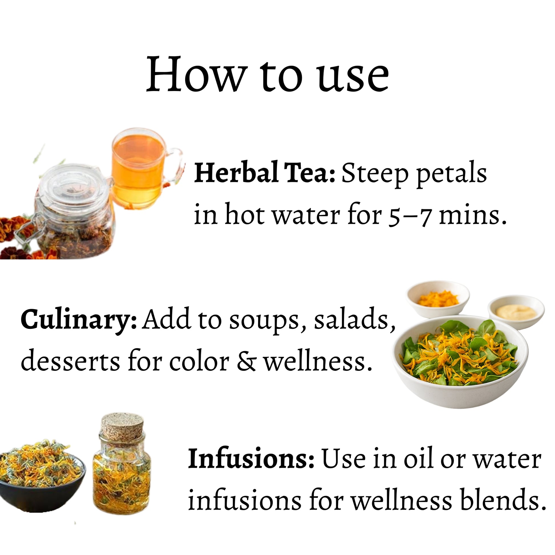 Great for herbal teas, desserts, bath soaks, infused oils & DIY skincare.